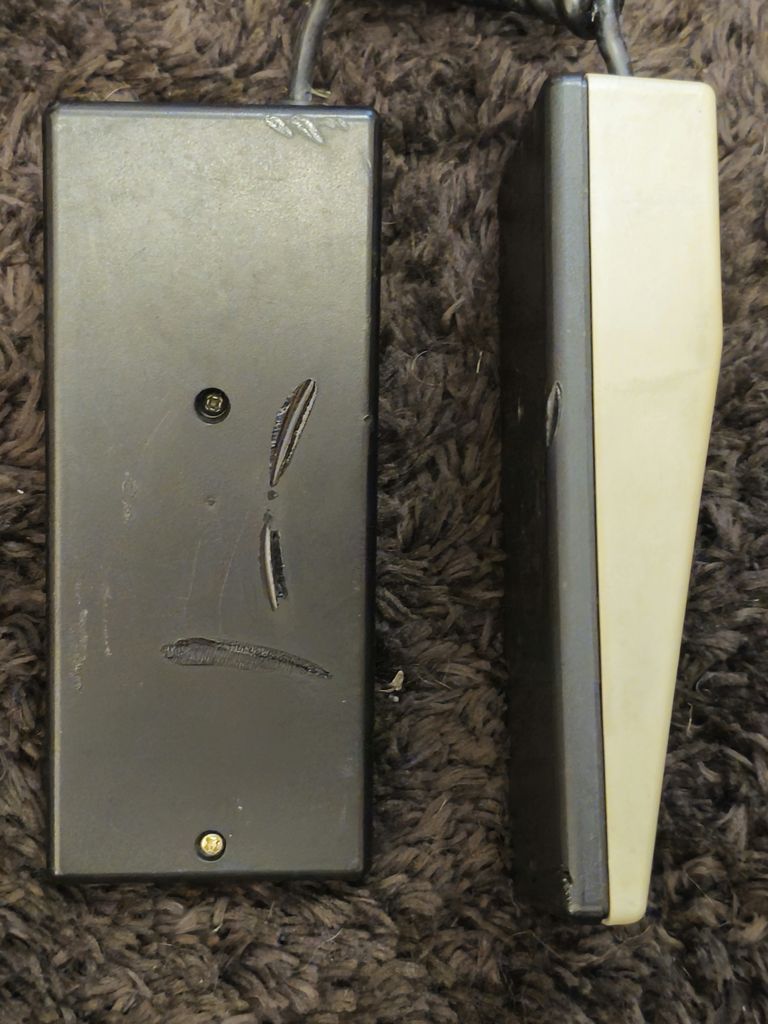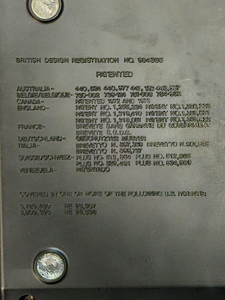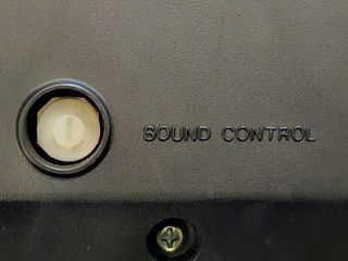 The base of the console with model label, patent information, and sound control