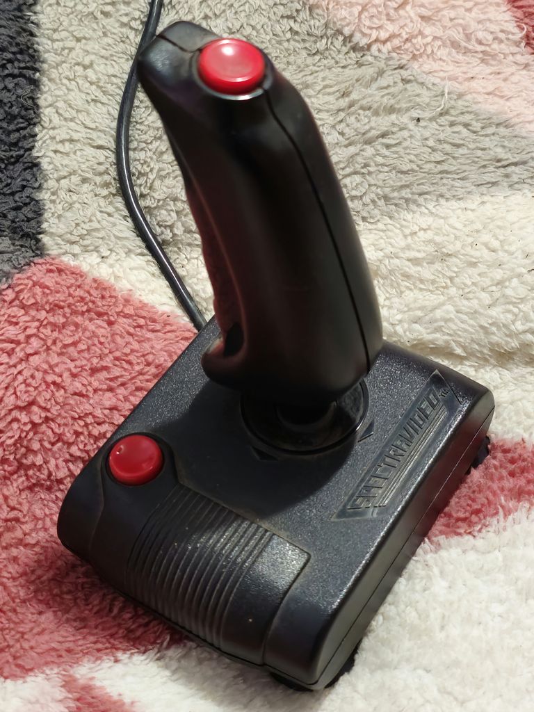 My collection of joysticks and joypads Also known as controllers Did you waggle or button-bash any of these back in the day, and how many did you break while furiously waggling them playing Daley Thompson's Decathalon? I broke a few of the C16 Plus/4 joysticks with their silly Mini DIN style connectors Or do you remember the hassle of connecting them to the Spectrum, did you have the Kempston, Cursor, or Sinclair interface? Or did you have one of the later Amstrad Speccys that didn't use the Atari standard despite using the same plug? Did the cable cause the interface to move slightly and disconnect itself causing a crash? Nightmare! In this room is my joystick collection, yes kids, this is what we used before control pads were invented. Most joysticks are all based on the Atari standard and can be used on most machines of the era, for reasons I don't know they were known as "Kempston" on the Sinclair ZX Spectrum The Sega Master System control pad used the same wiring as the Atari standard, but had two buttons, which would later be adopted by the Commodore Amiga etc There was six wires as a minimum, a common wire, then a wire for each direction, and one for fire. Depending on which direction the stick was pushed, a switch would connect that direction wire with the common wire to make the connection and the host computer or console would register the movement Later controllers with more buttons than available pins which used the same style of plug may have used a shift register to read all the button inputs There was a Sinclair standard which used the same socket and plug combination, but with different wiring, some joysticks had two plugs for this reason, the black plug was the Atari standard, and the grey plug was the Sinclair standard. There are examples of these joysticks with the two plugs in this room. While Sinclair was under Amstrad's reign of terror they made joysticks that used the Sinclair standard called the SJS1 and SJS2. Also there are the TED series of Commodore computers which introduced the mini-din style socket for it's controller ports (and other accessories), although you could get adaptors to use the normal Atari style joysticks as what joysticks you could get for these machines was rather limited. Holding one of these brings back maximum nostalgia for me Lastly we have official and third party controllers for the consoles of the era There are 49 controllers in the museum