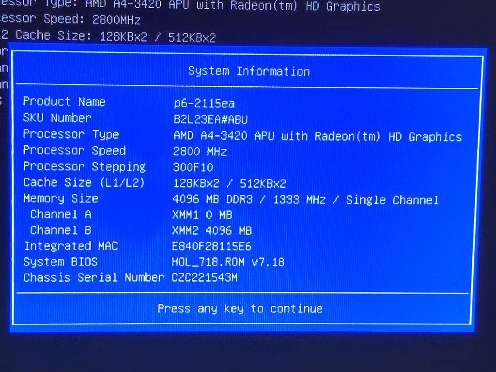 Looking like the HP Pro PC's I already have, this is an HP Pavillion version, with an AMD processor clocked at 2.8GHz and 4GB's of RAM