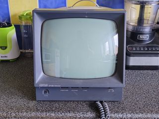 The tube size is twelve inches diagonally across with a green phosphor, and being a monochrome monitor there are only a few controls available, which are limited to a power switch, with Brightness, Contrast, and Vertical Hold dials under the screen