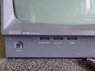 This green screen monitor is the GT65, there was a GT64 version, the difference was the 12v socket on the front of the GT65 for powering the disk drives of the CPC664 and 6128, but would work with the CPC464. The GT64 didn't have this socket so was not compatible with the disk based machines