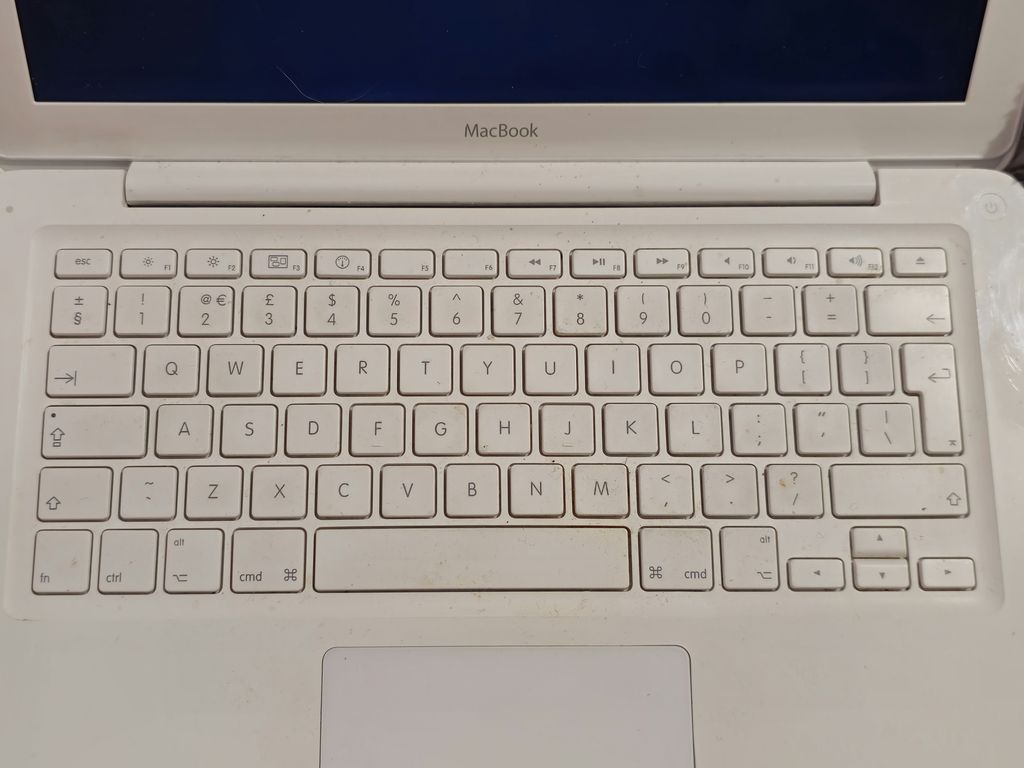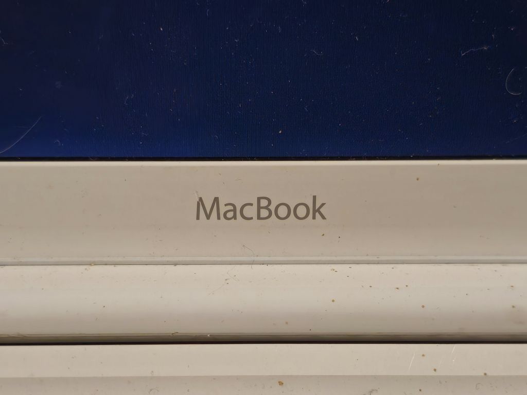The base of the MacBook which is grubby and starting to come away from the plastic in places