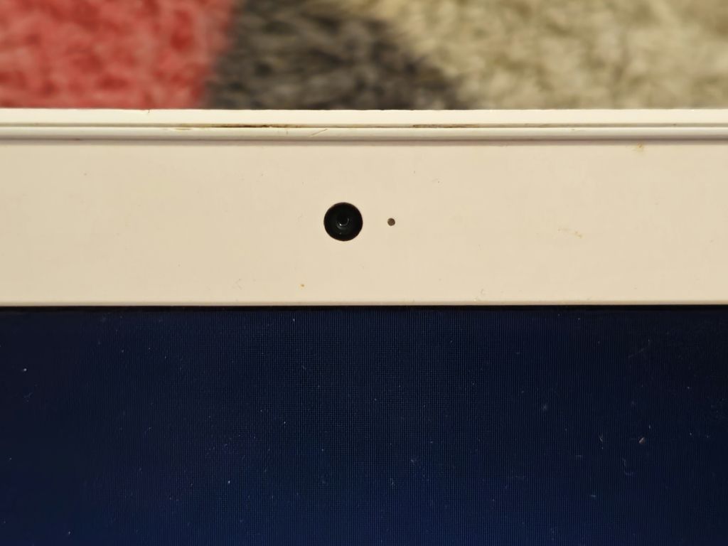 The MacBook logo and webcam with LED that can be turned off when the camera is on, ISeeYou!