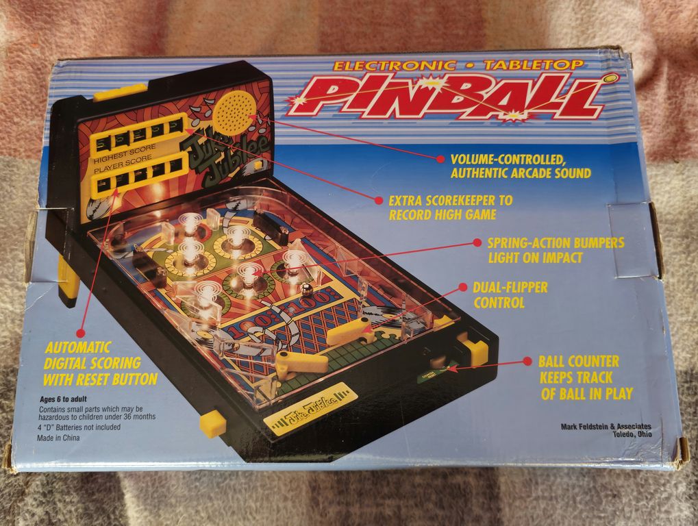 The name Mark Feldstein & Associates is printed all over the box, who today seem to be known for novelty clocks, fancy cushions, and other giftware or "Innovative Products" as they claim on their website