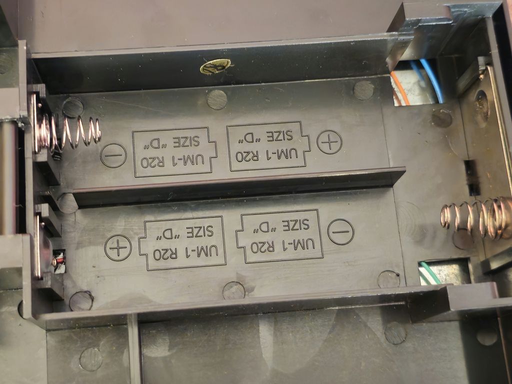 Details on the base include the control to store the ball when it's not in use, the battery compartment when open which shows the game takes four D cells, which I don't have at the moment. The logic board compartment also has the volume control for the game