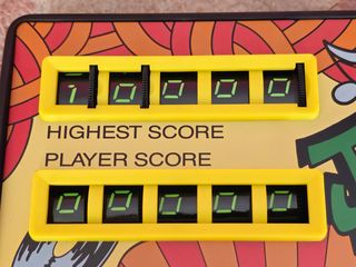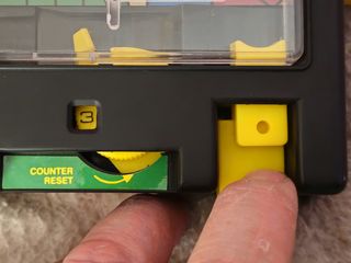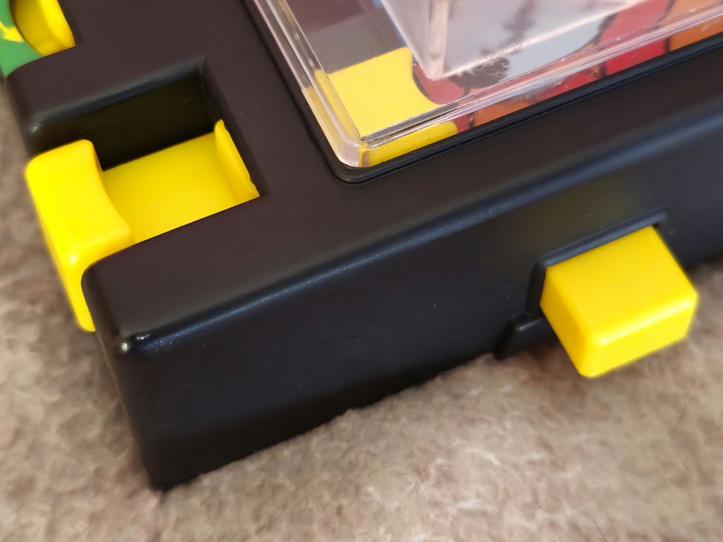 The yellow button on the top resets the score like a cars trip counter and there is the power switch for the game as well. The mechanism can be a bit unreliable after so many years