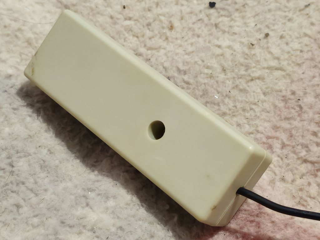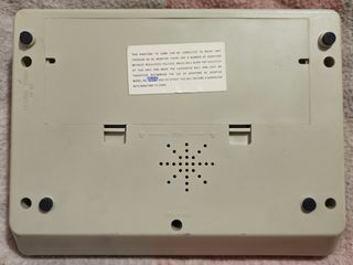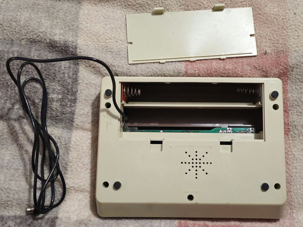 The base of the unit with battery compartment, RF lead, and the all important sticker we all know and love