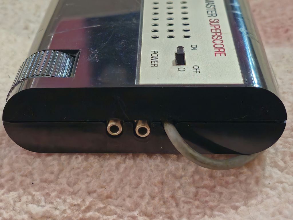 The Videomaster Superscore VM8 was released in the UK in 1976 and utilises the common AY-3-8500 chipset. It was sold as a kit you could assemble yourself, or fully built. This console was also sold via the Prinztronic brand in Dixons as the Prinztronic Tournament, albeit with the sound option swapped to ball return angle