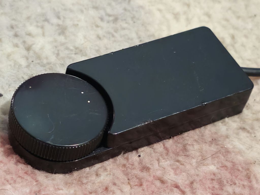 The controller is very small and shiny and features has a rotary dial
