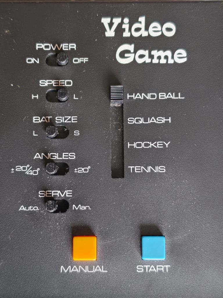As it is using the AY-3-8500 it offers the same games and same options as many other Pong consoles utilising the same chip, the options are ball speed, ball return angle, player bat size, and auto or manual serve