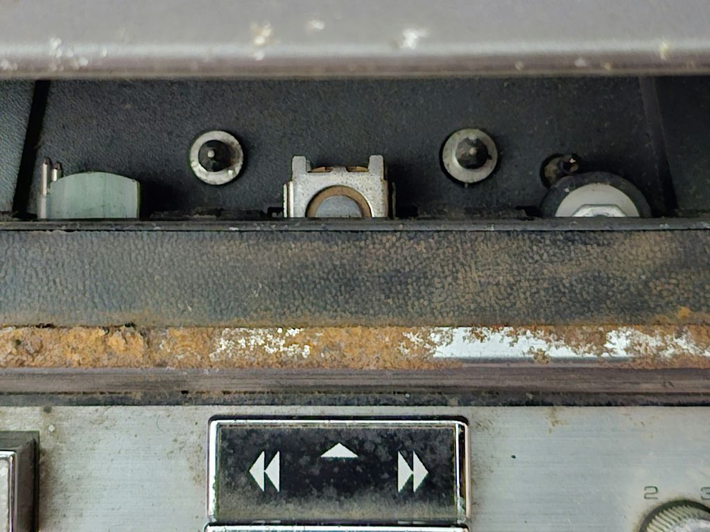Close up of the capstan, pinch roller, tape head and electromagnetic erase head