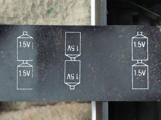 Bottom of the unit with model labels and battery compartment