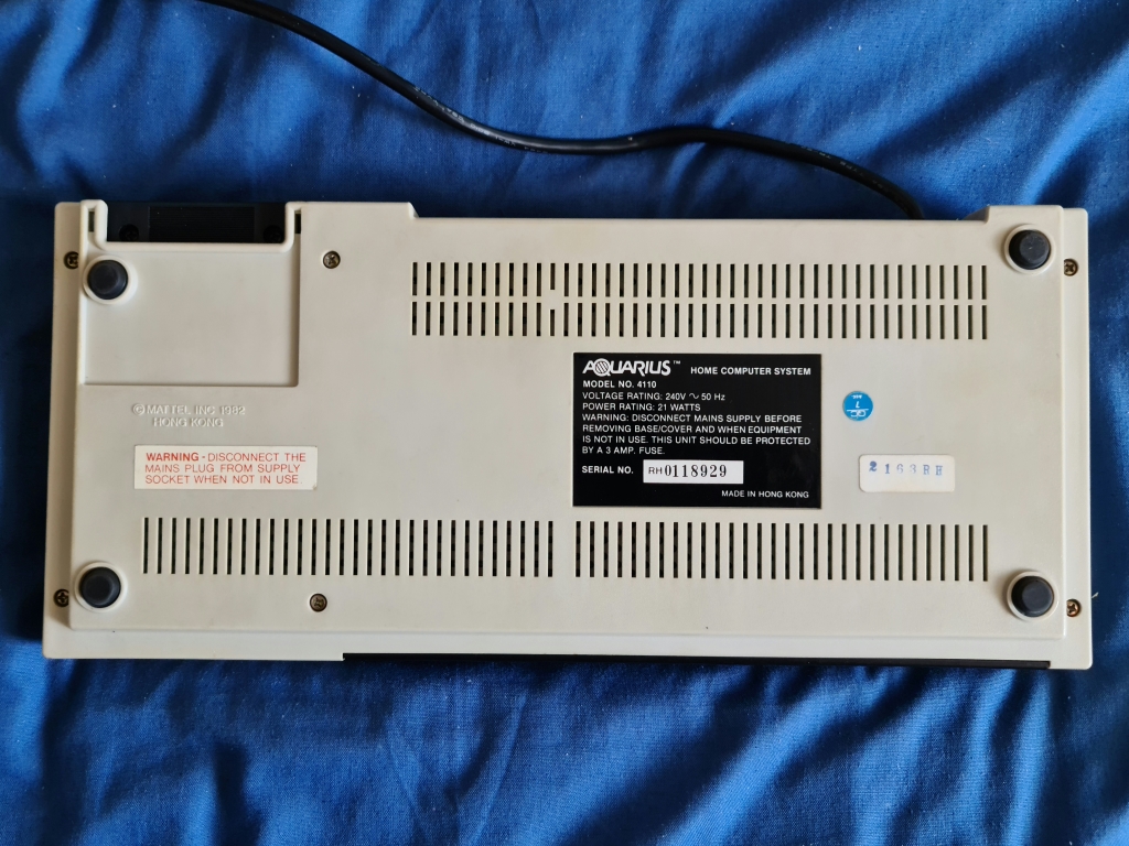The top and bottom, the machine itself feels really well built and sturdy, it is about the size of an Acorn Electron, or a Spectrum 128 (Toastrack), with a fair weight to it, it feels good. There is a green LED to the right of the Aquarius legend