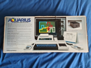 The Aquarius was made by Radofin which made the previous Intellivision console, it has a Z80 as the processor, 4K of RAM (expandable), 8K ROM with Microsoft BASIC, monophonic sound (expandable with the expansion block), a horrible rubber chiclet keyboard, and character based graphics, similar to PETSCII. There was an Aquarius 2 but it was not released in any great numbers