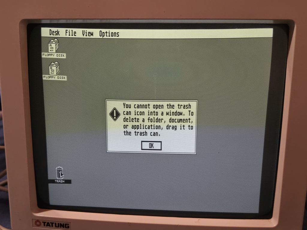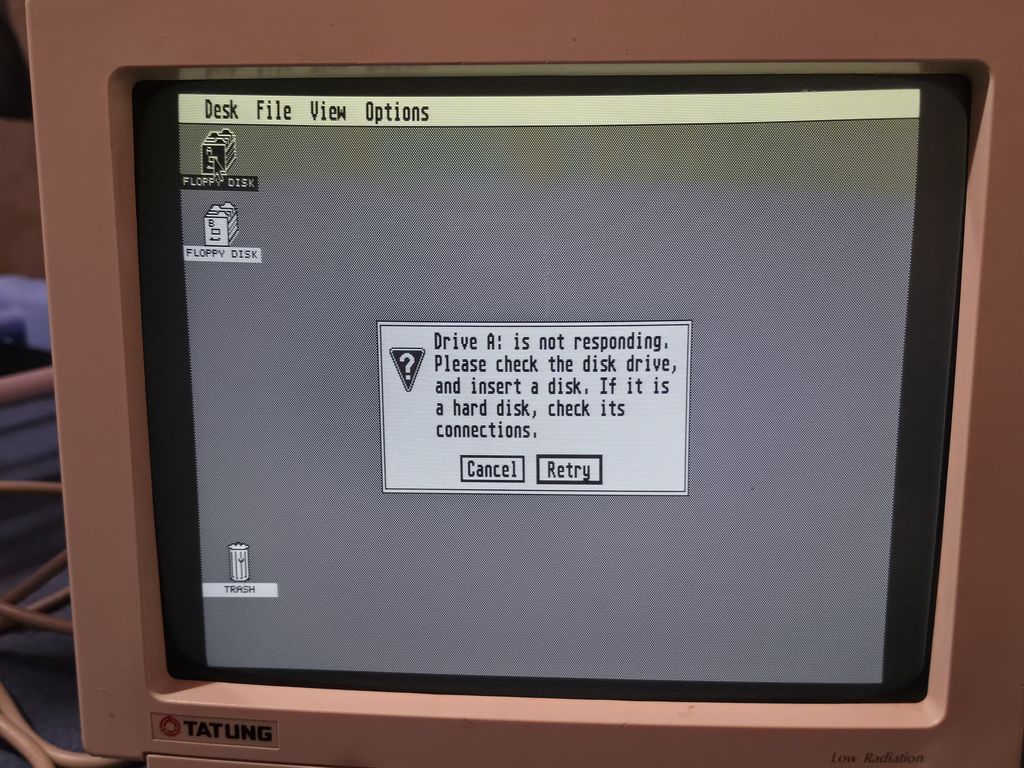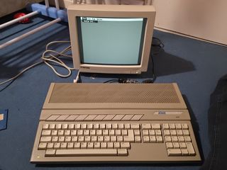 I had been seeing this Atari 520 STFM in a local Cash Converters for a long while, it was starting to eat away at my soul as these things usually do. It was originally priced at £159, then reduced to £129, then eventually to £99. At that point I could take no more and made an offer which they accepted, I think they just wanted rid of it. It also came with the Tatung MM14SAE monochrome VGA monitor that allows the Atari ST to work in high res mode