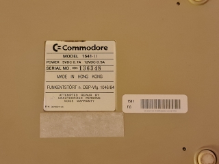 And I finally have a disk drive, it's the later 1541-II model, it has the switch on the back to change the drive number, as well as two serial ports and a power connector and switch. You may notice it even has the drive protector inserted