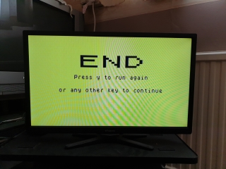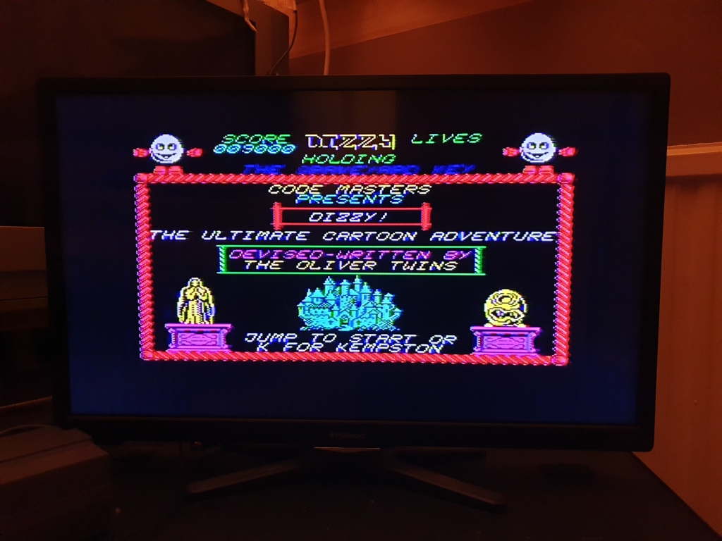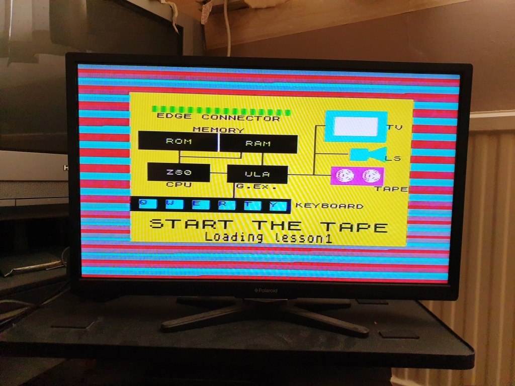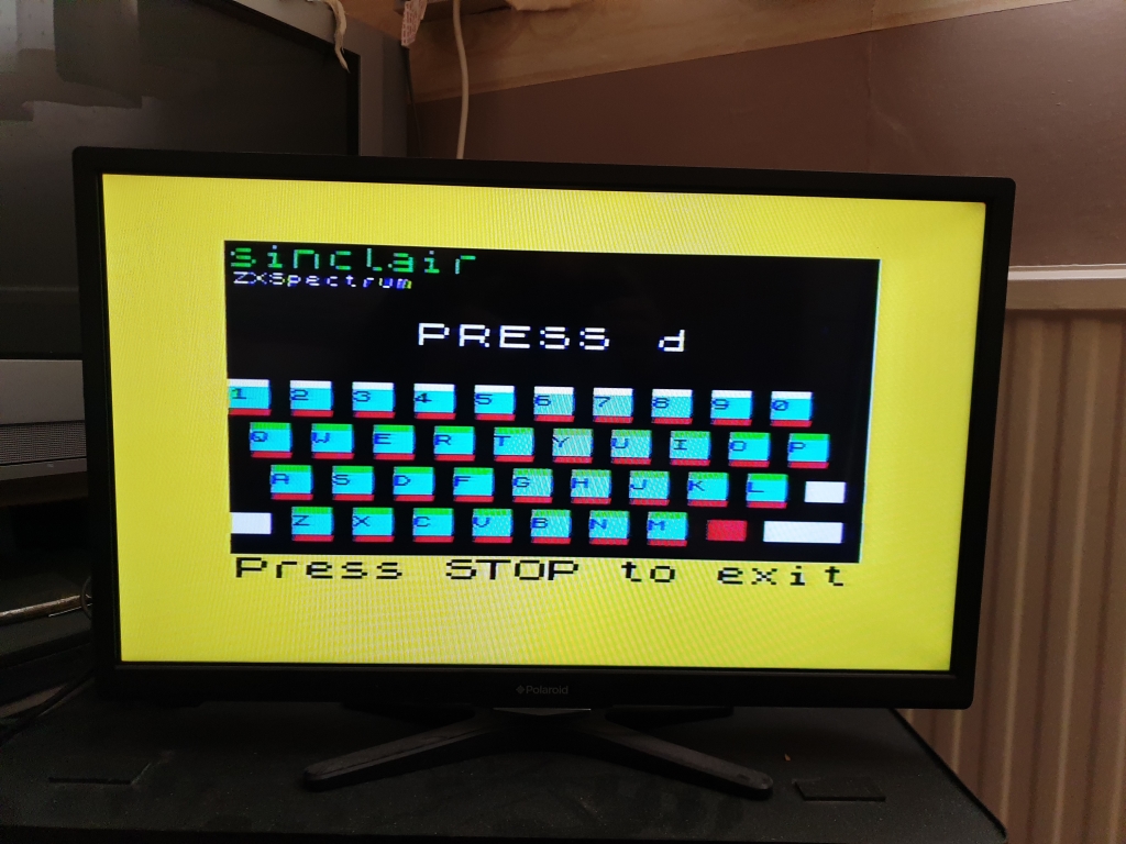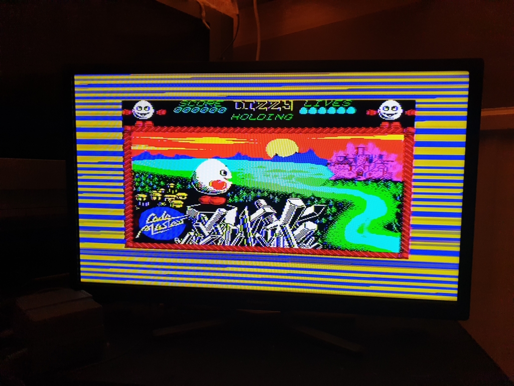It took a little while to get the modern LCD screen tuned into the Spectrum's RF output, but we got there eventually, you can see the Amstrad models have a red power LED