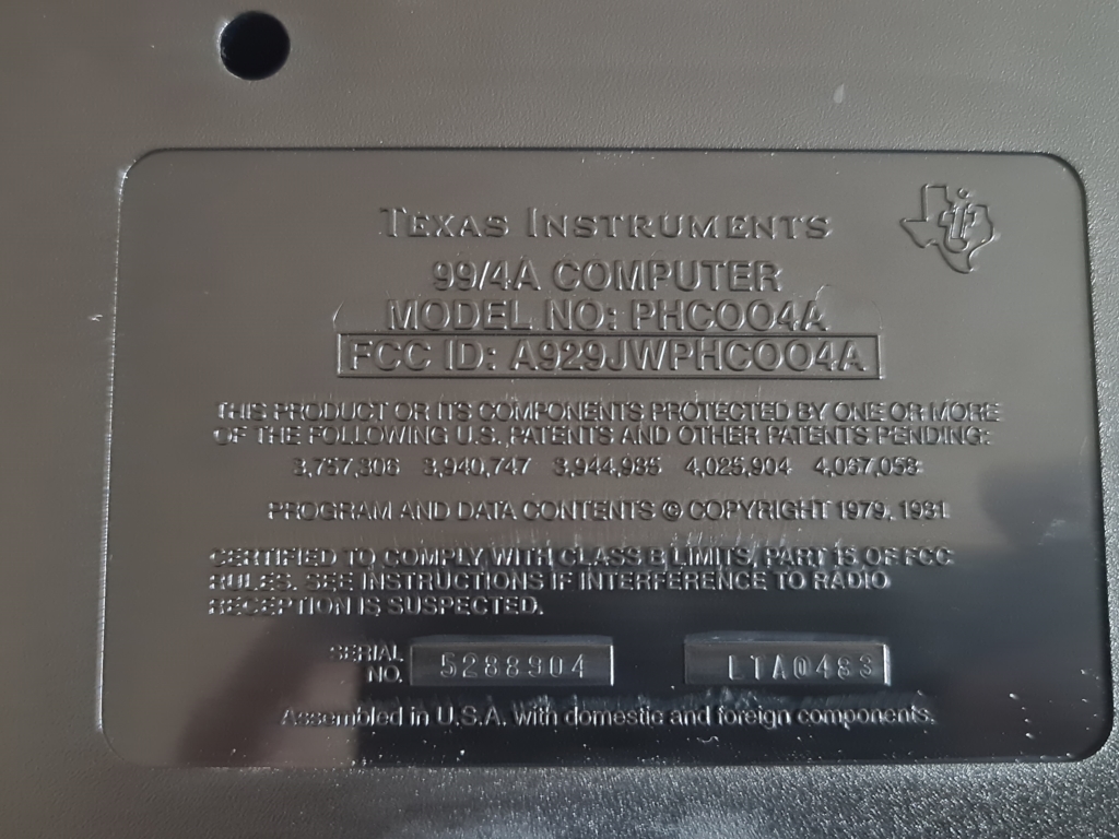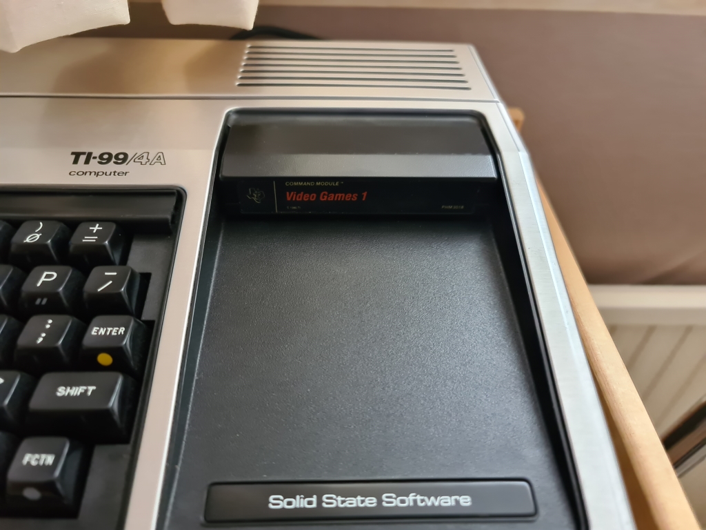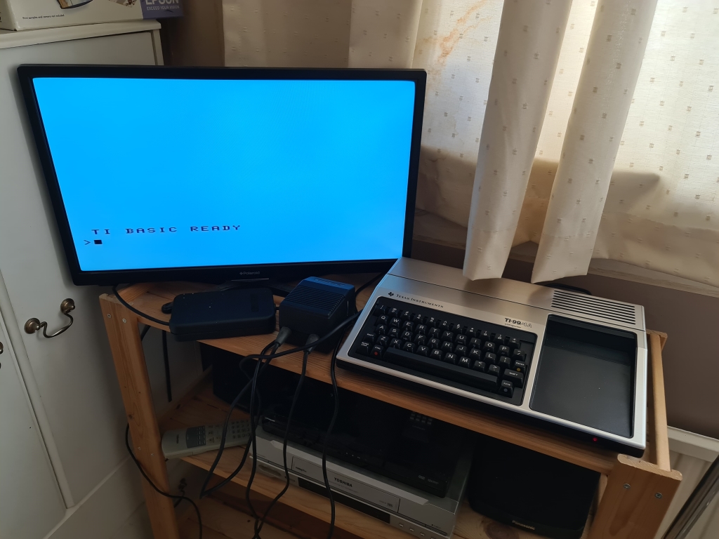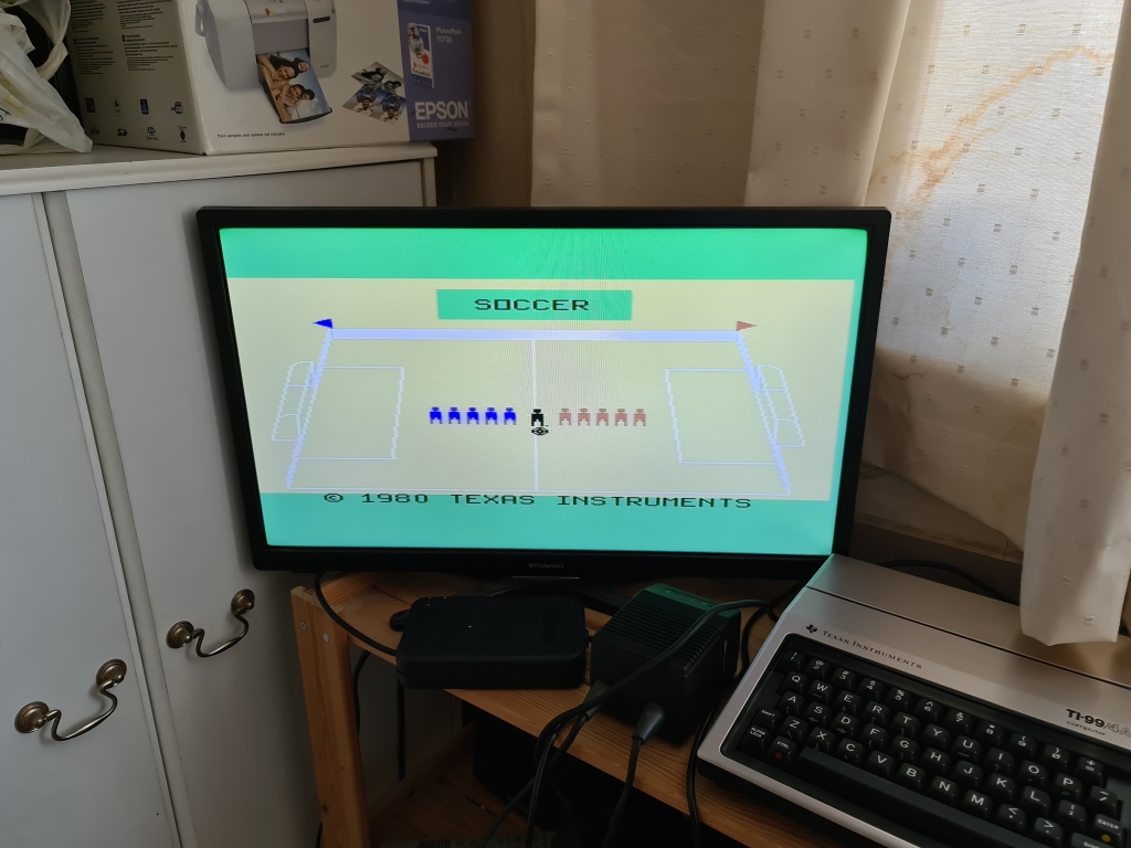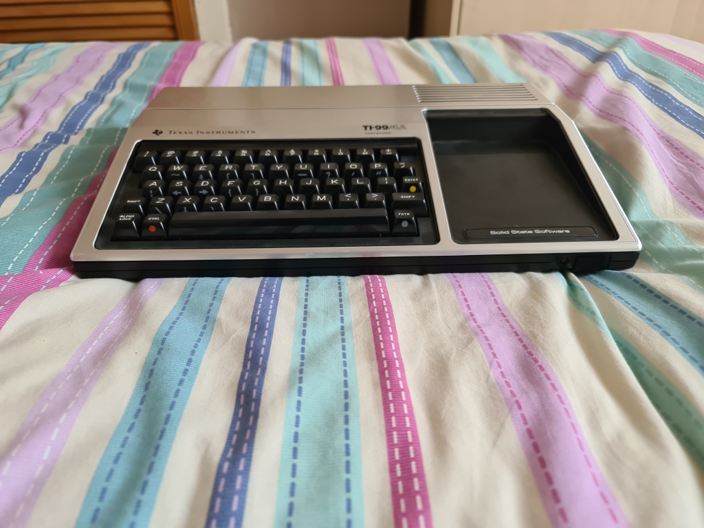 This is the other TI99/4A, it works too, you may notice the badge with "Solid state software" written on it isn't on this machine