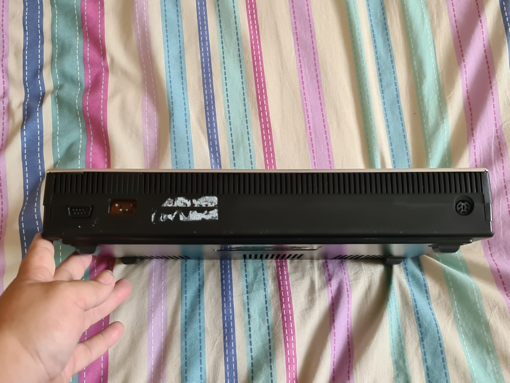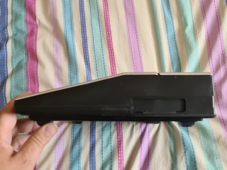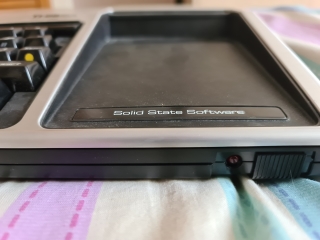 The machine looks really good, it appears to have a metal top case, and there's a recess on the left side for a cartridge slot. There's a power switch with a red LED on the right hand side at the front, move to the right to switch on, and left to switch off