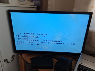 It was at this point I discovered the keyboard is not great, it's nice to type on but there's no backspace key, which is really annoying, to delete characters you have to press FCTN and S to go back, then FCTN and 1 to delete, how annoying is that? Also you'll notice there's no lower-case characters, just smaller upper-case characters