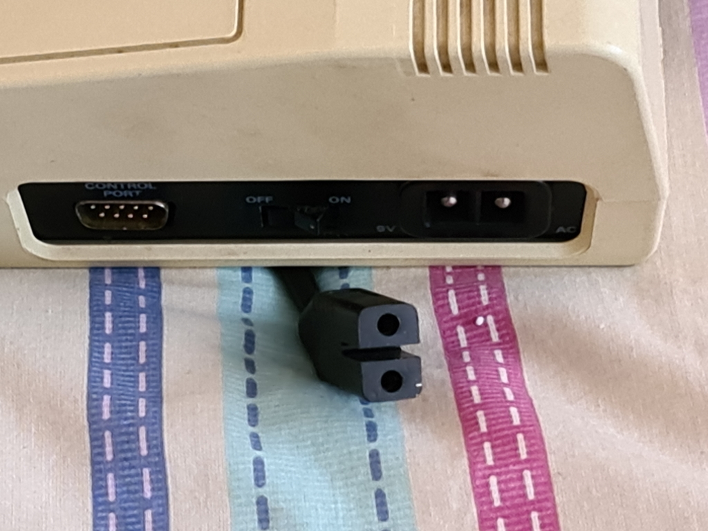 On the right side is one Atari compatible joystick port, a power switch, and the power socket, earlier versions of the VIC used a two prong connector (see the Vic below)