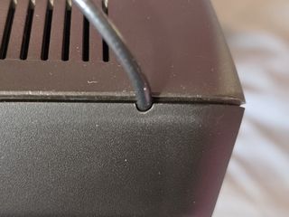 All the cables are permanently attached to the machine, and there is no power switch on the European version. There are knock-out plugs on the back though