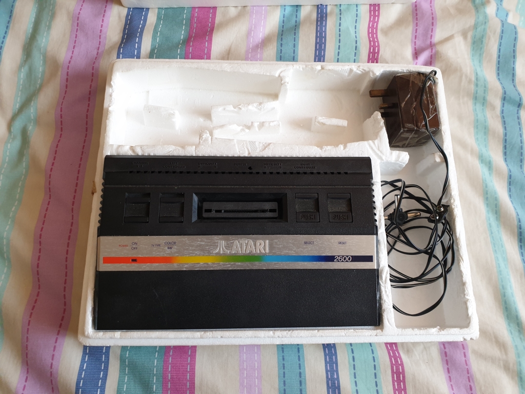 I have wanted an Atari 2600 for longer than I can remember, so when a "not working" boxed console appeared on ebay, I fancied taking a punt on it, after all, it was boxed, came with a game, two joysticks, one of which was a Konix Speedking, and a universal power supply. So if it didn't work and was beyond repair, I could just pick up a working console separately.Besides, I paid less for this than for a working Atari 2600 Jr console