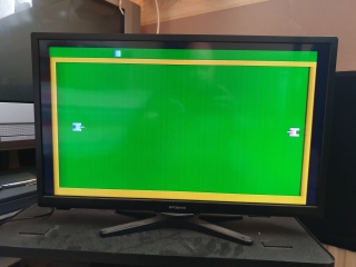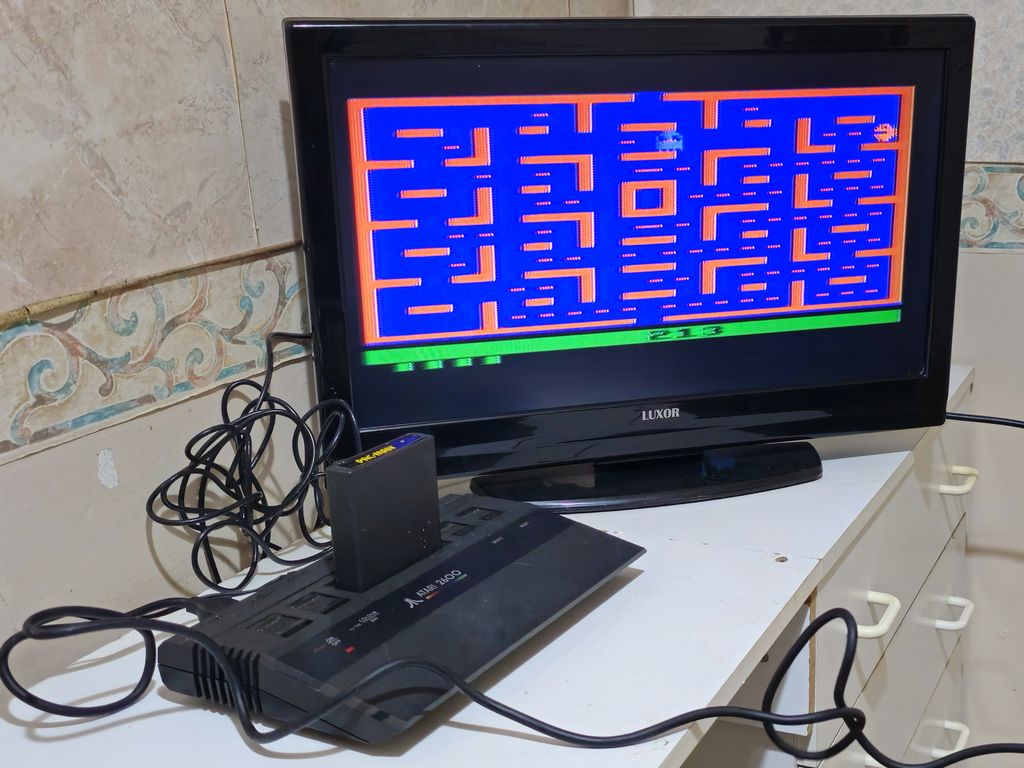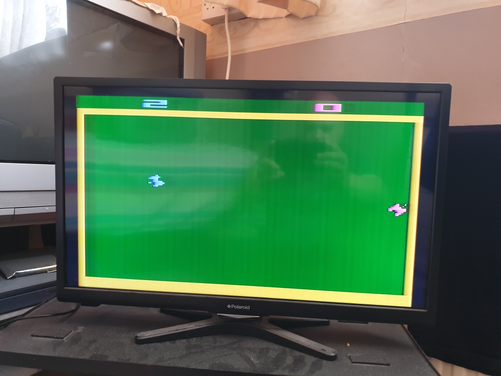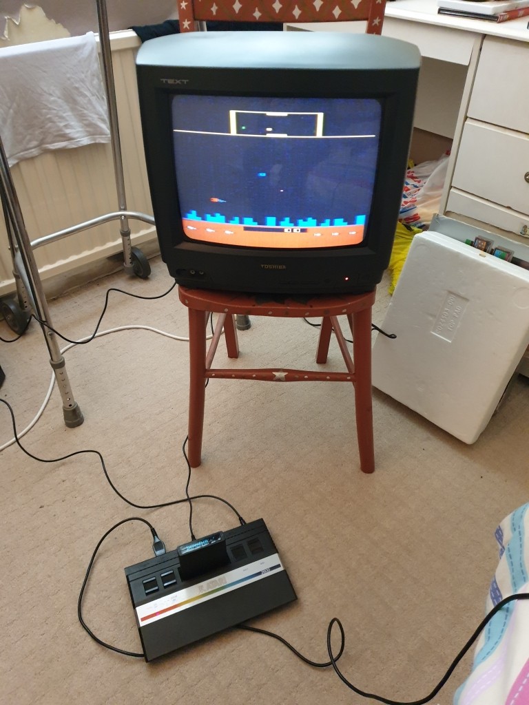 Once all connected up and switched on, the LED on the Atari lit up, halfway there. And after what seemed an eternity waiting for the TV to tune in a picture appeared, a bit fuzzy, but WOOO HOOO!