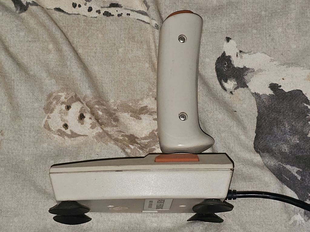 Here are the joysticks, the left is a cheap and nasty joystick which seems to reset the Atari when both fire buttons are pressed together? Next is the Konix Speedking, It's missing the plastic joystick, but works fine, actually it feels very nice to use. I wonder if you can get parts?