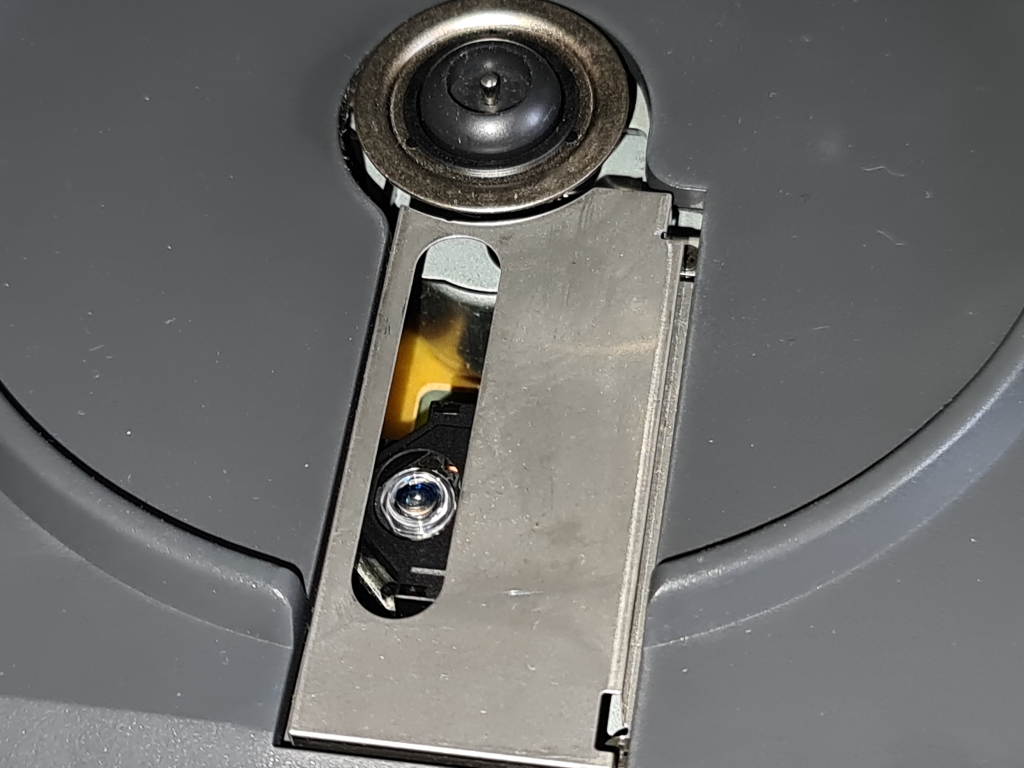 On power up the light comes on dim, then goes bright, like normal, then the disc access light turns on and the CD laser assembly resets to the centre of the disc where the table of contents is
