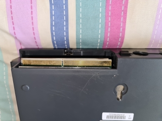 The rear of the unit is mostly taken up by the expansion bus, then a power switch, power socket which is different to a normal Amiga socket, although the voltages are the same, so an adaptor shouldn't be too hard to make. RF out with frequency adjust and sound carrier selection, then a S-Video out port, and finally composite video and stereo audio out