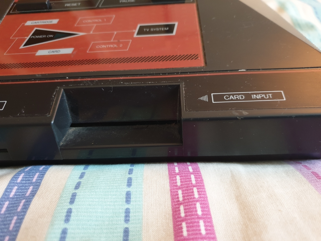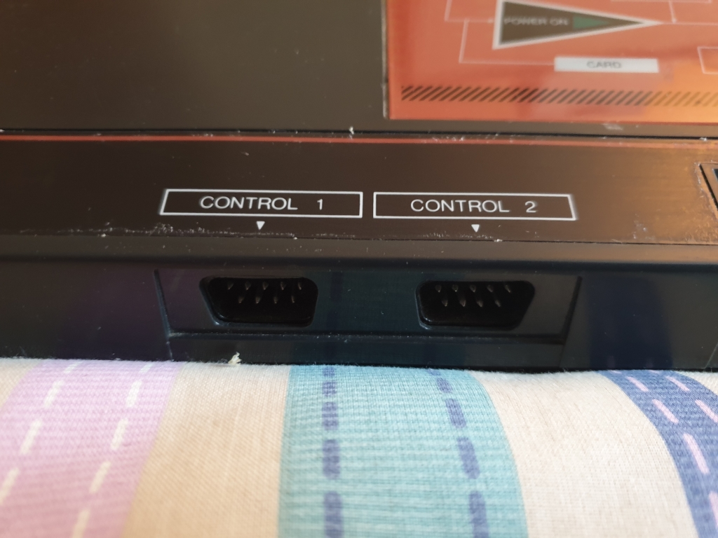 The front of the machine has a power button on the left. two Atari style control ports in the middle, and a game card slot on the right, the card slot was used for games that could be distributed on credit card sized cards, these had storage limitations and were hardly used even though they were cheaper to produce. The format was dropped from the later Master System 2