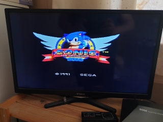 I borrowed some bits from my Master System 2 and connected it all up, and switching the machine on for the first time and it works straight away
