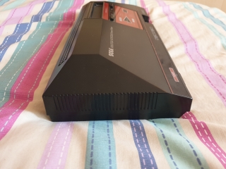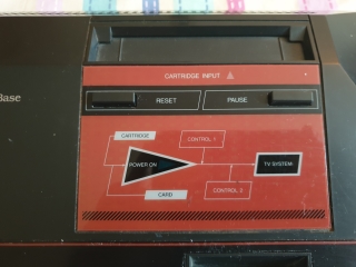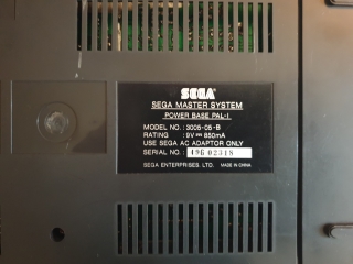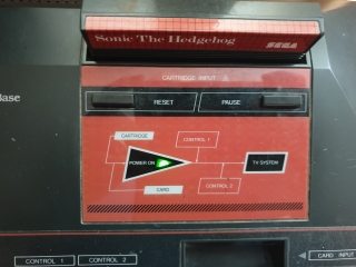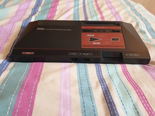 The original Master System is a pyramid shaped plastic box, it's quite light for it's size. Looking at the top of the machine there is the text SEGA MASTER SYSTEM/Power Base on the left, and the cartridge slot with reset and pause buttons underneath, there is a kind of schematic block diagram of the machine with a power on LED, other than looking pretty, I'm not entirely sure what the point of this was