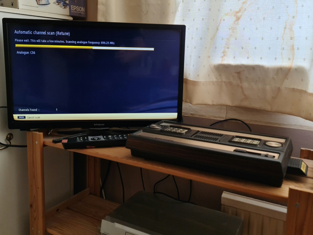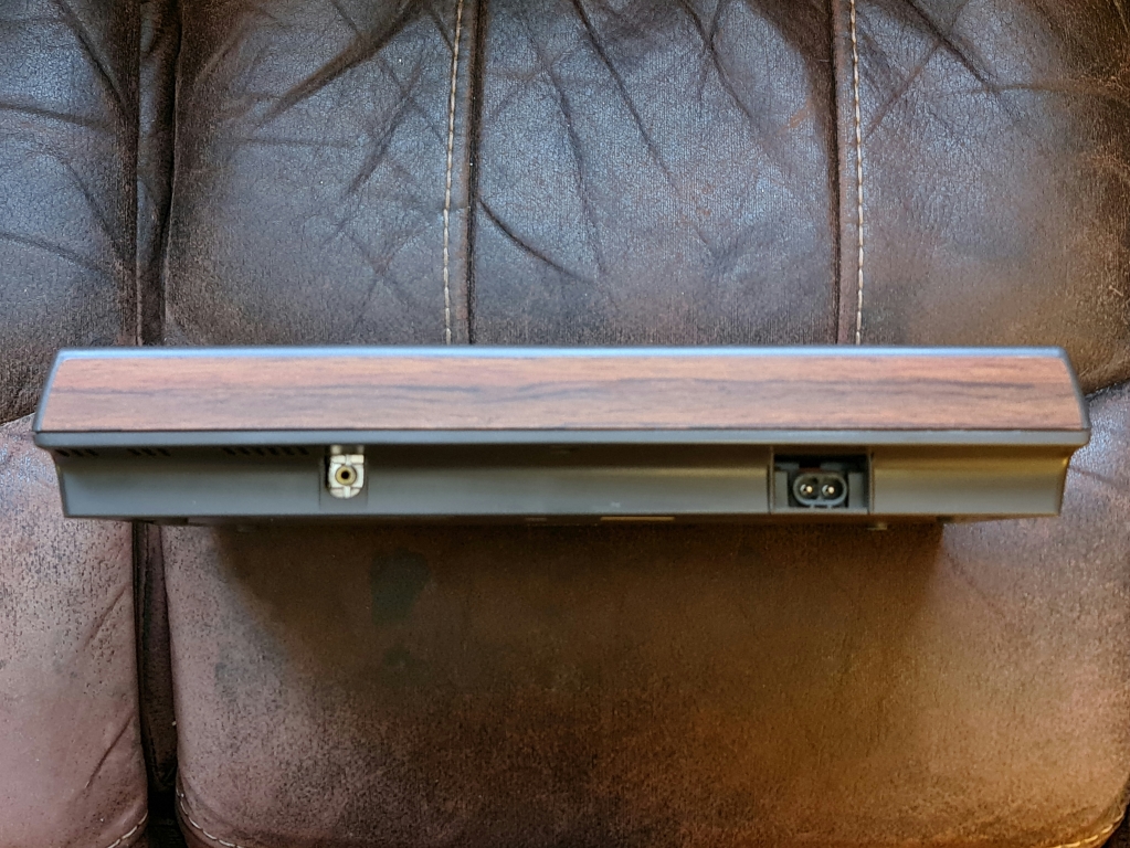 Woodgrain to match even the most 1970s style of décor. The rear has an RF socket and power connector, it would appear the power supply in built in, need to check for Rifa's