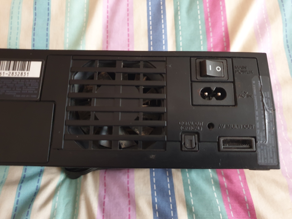 On the rear right side is the power switch, standard "figure-8" power lead socket, the AV Multi out socket which connects to the TV via several different connection methods, and an optical (TOSLINK) audio out connection