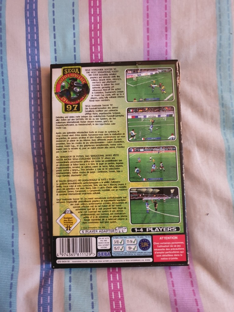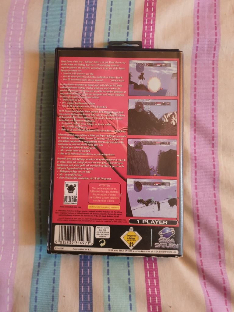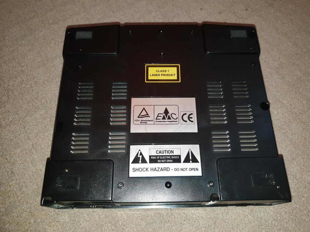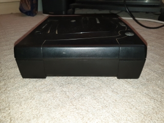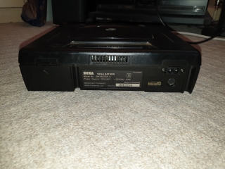 Here is the top and bottom of the console, you have the usual power, reset and disc tray open buttons, some revisions of the Saturn have different shaped buttons. The bottom just has the labels.
