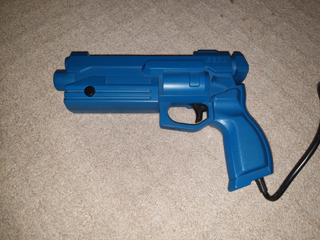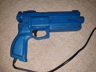 I have two controllers and one light gun, there are no scary warnings about using the gun in real life outside, as there is on the Dreamcast light gun.