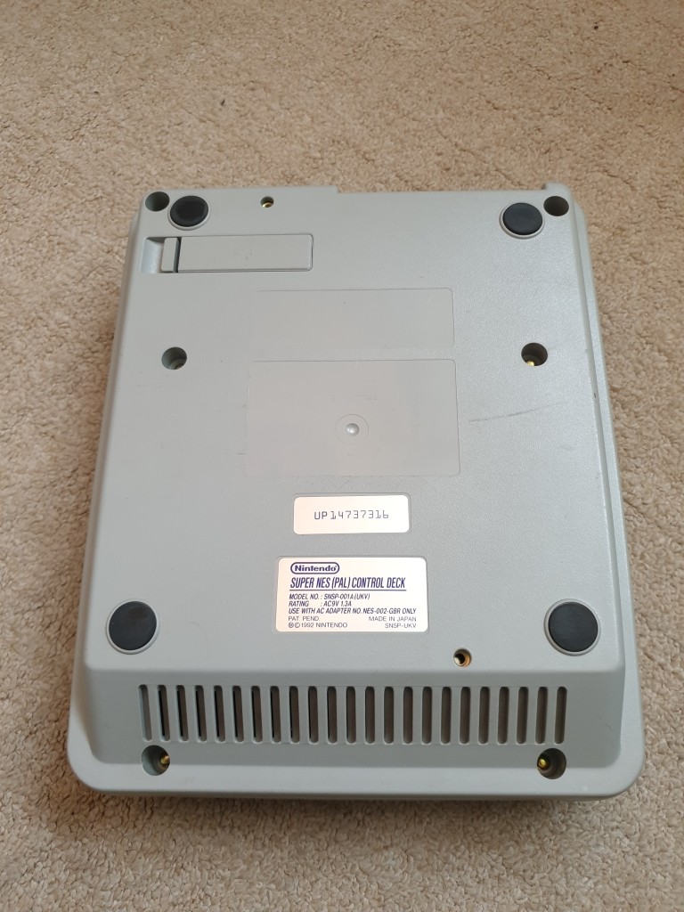This page has been a long time coming, mainly because my original SNES died some time ago, and then got dropped by accident breaking the rear of the case.But I've recently got hold of a replacement SNES console, it was listed as working perfectly, but it had strange markings on the case, which the seller didn't know what they were.Fortunately I can recognize a failed Retrobright attempt from twenty paces, but the console does work perfectly, and it was cheap enough for me not to worry about it.However, I may pick up a non-working SNES in the future and swap the cases over