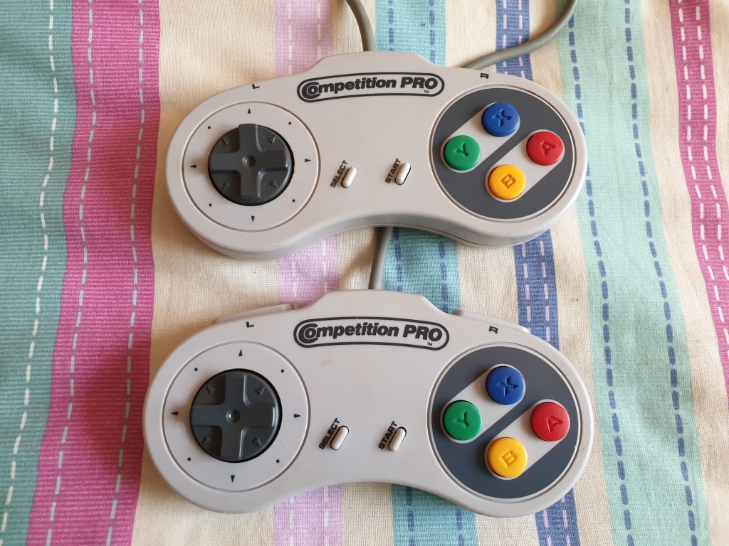 The original SNES came with these 3rd party controllers, they both work, but one has a broken screw mount
