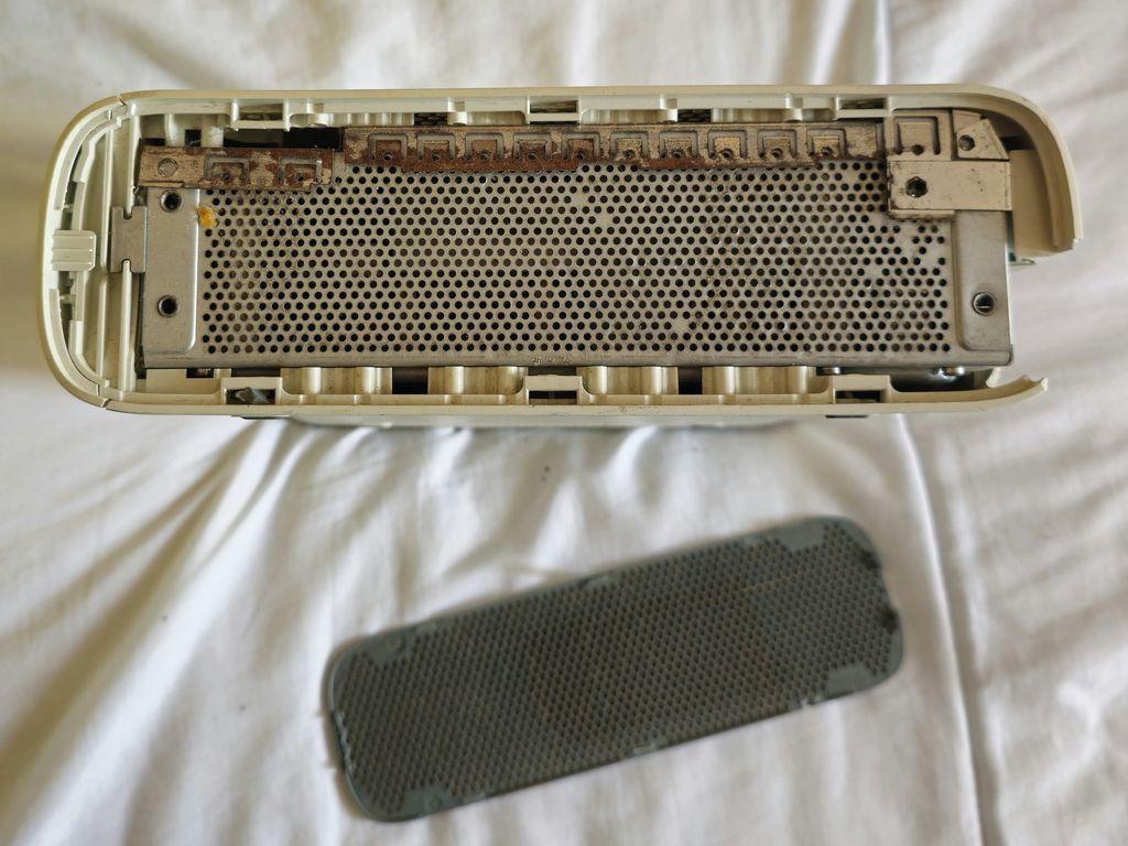 Here's where things start to fall over, the bottom vanity cover is broken and does not stay attached to the console, and there's corrosion on the metal sheilding