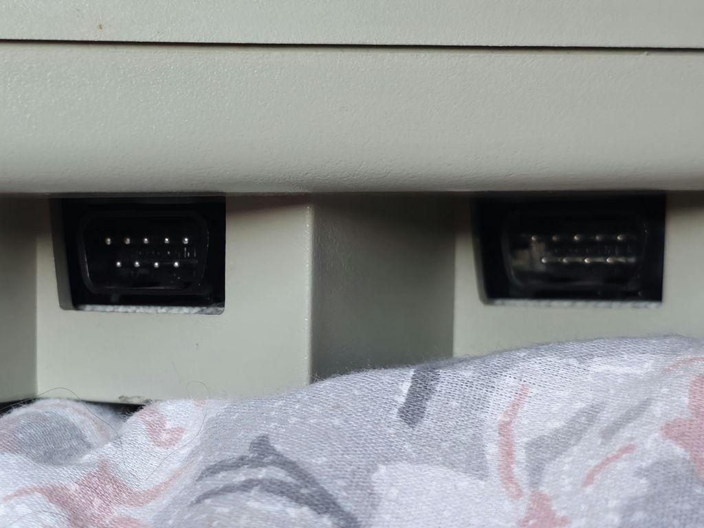The keyboard connector on the left and the two atari standard joystick ports on the right, I did recently pick up an XEGS joystick, these were like the Atari 2600 CX40 joysticks but in a grey colour to match this system