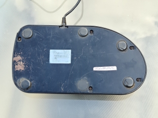 From underneath, one of the rubber feet has fallen off, the rest have gone hard now, and the model label has faded