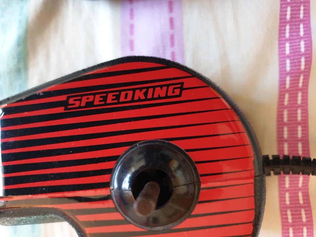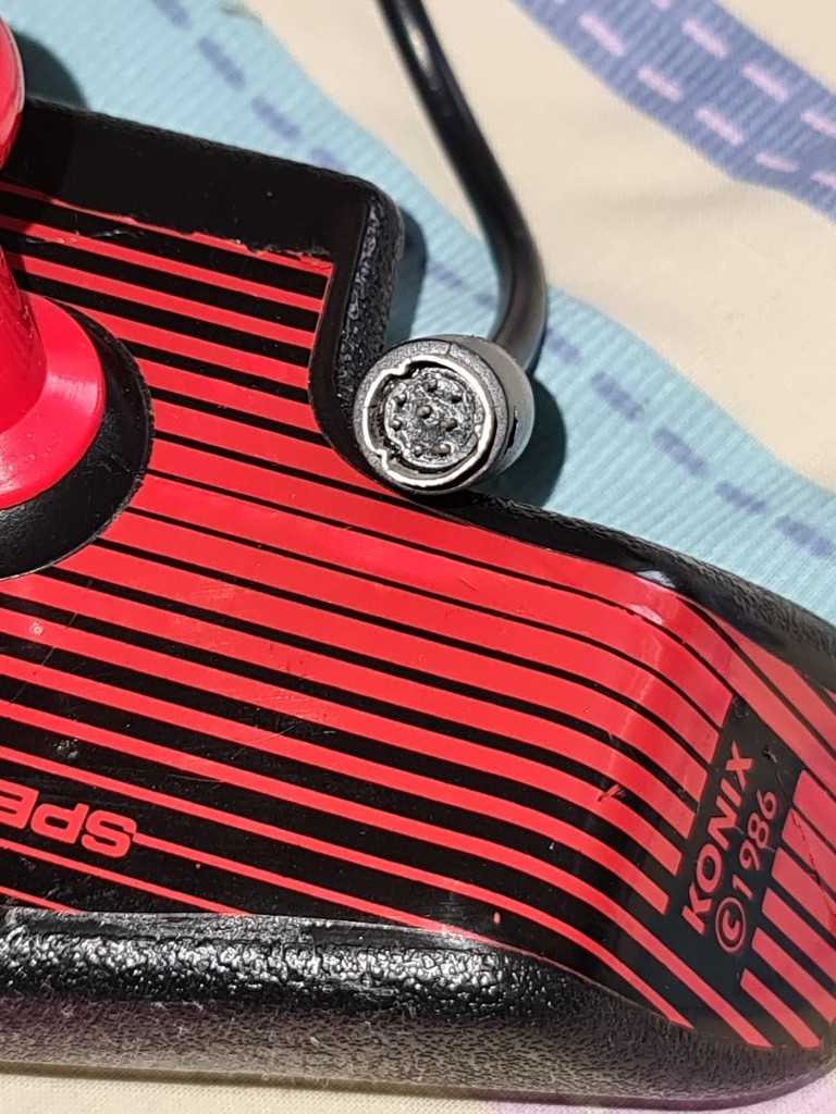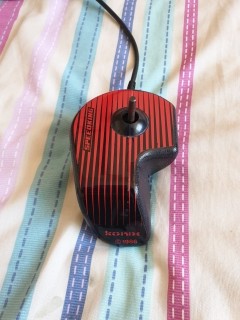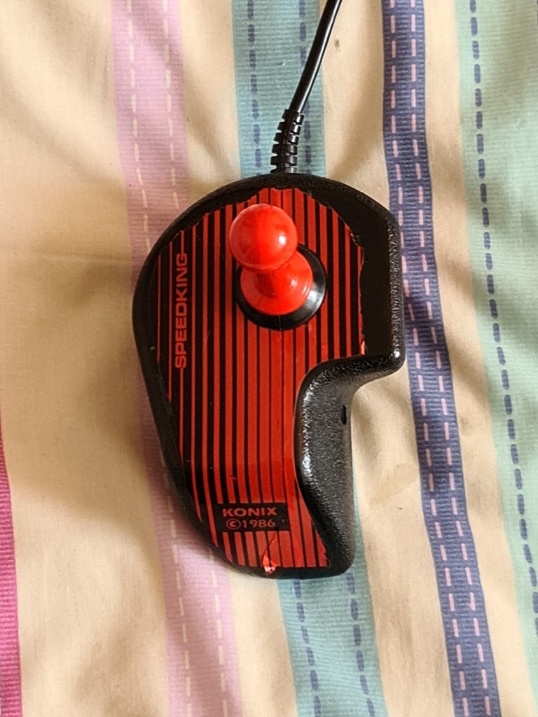 Here I have another Konix Speedking, this one has the red stick and a plug for the C16 and Plus/4 line of computers, the label has seen better days, and I had to clean off some sticker residue, but it seems to be in a decent condition