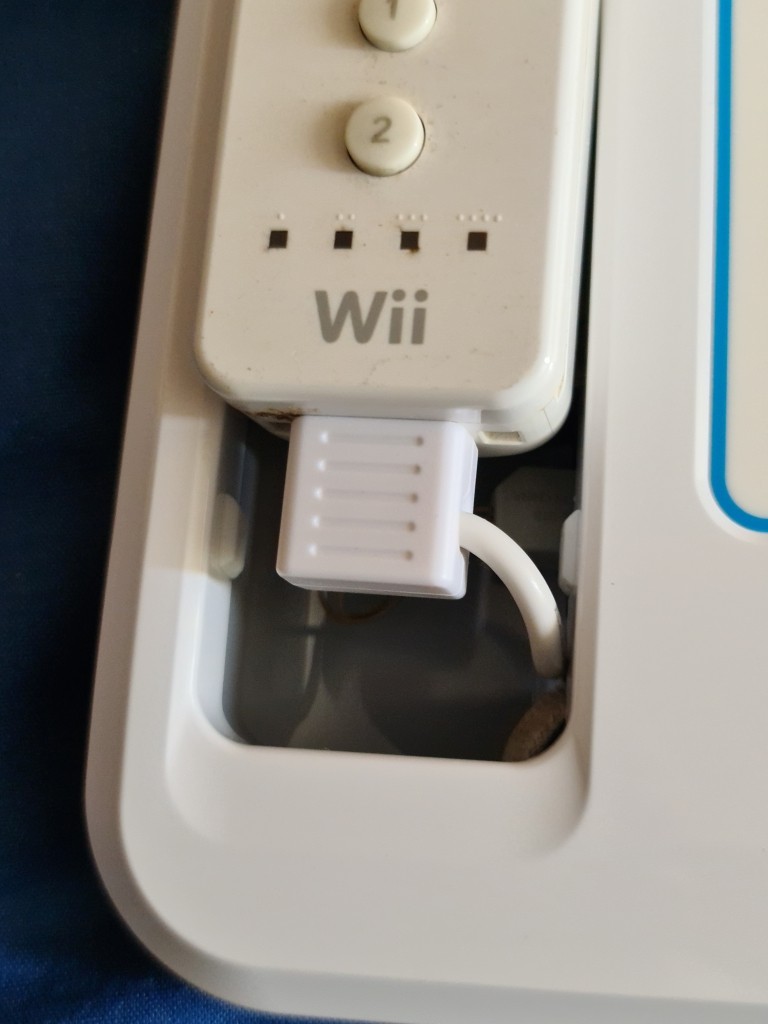 The Wiimote plugs in using the normal plug/socket