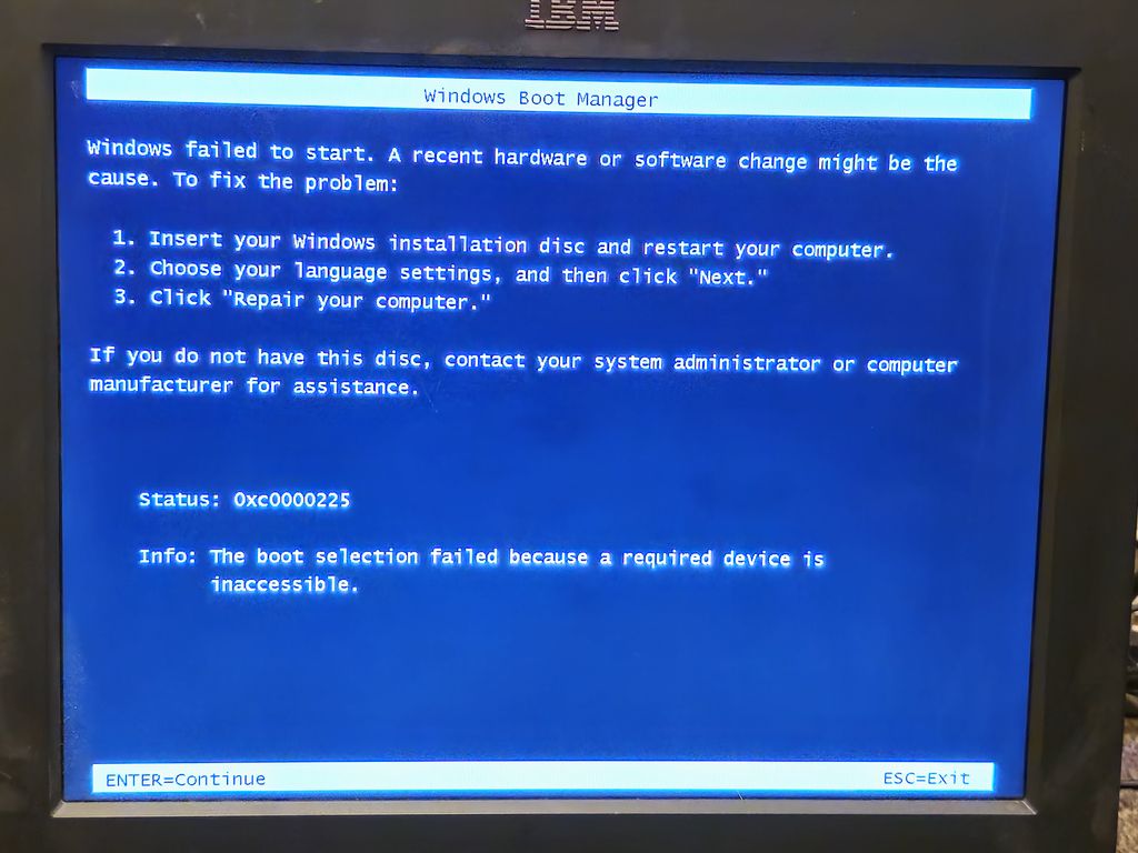 On the next boot the Windows failed to boot screen appeared, and then no disc was found. Maybe the hard disc is dead?