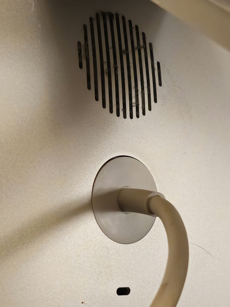 This is the Apple Pro Keyboard which was not the original keyboard, but it work fine, it is very dirty and the dirt seems to be behind the plasic shell, the cable is damaged at the keyboard end