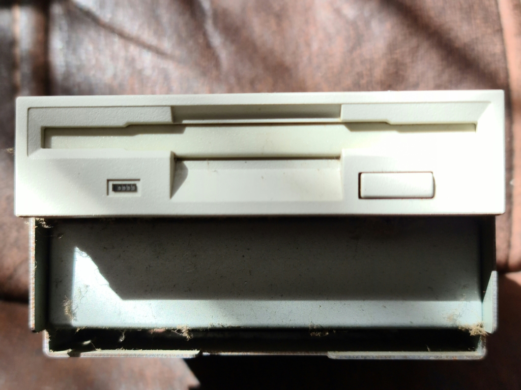 A floppy drive in a mounting cage