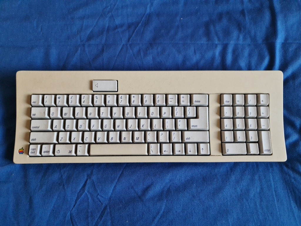 This is the Apple Standard Keyboard, it has a detachable lead, and the mouse plugs into the keyboard, the large button at the top is a power button