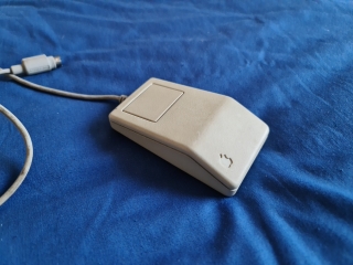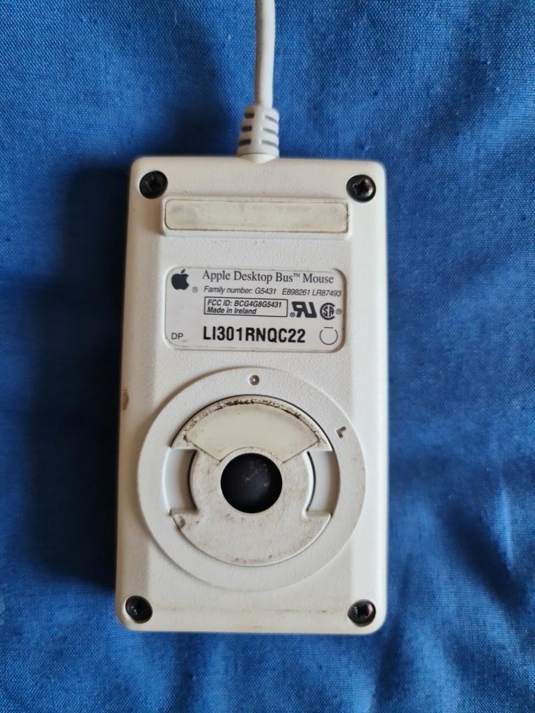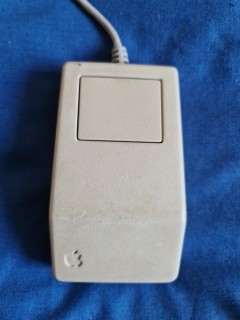 The Apple Desktop Bus Mouse, it's a ball mouse with one button
